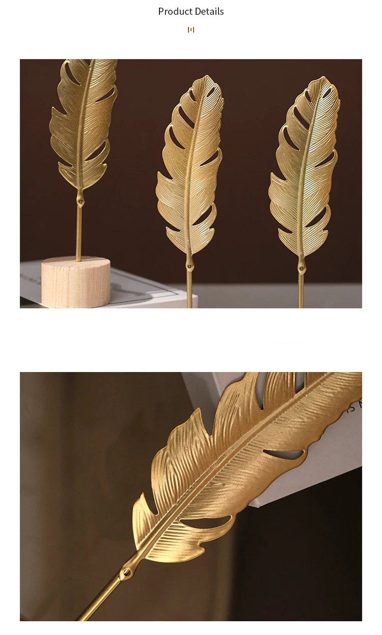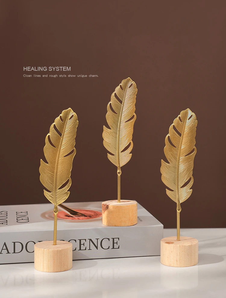Golden Ginkgo Leaf Feather Metal Model Statue - Desktop Craft Ornament Photo Prop Home Decor Manual Sculpture Home Decoration